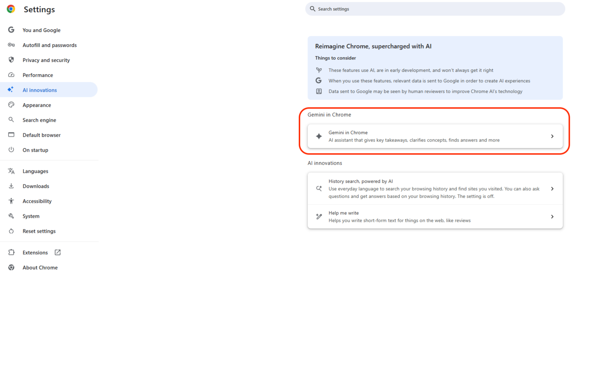 새로운 ‘Chrome의 Gemini’ 버튼을 끄는 방법