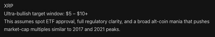 현재 거래 수준인 $2.13에서 330%나 뛰어올랐습니다. 출처: Kimi AI 미국 증권거래위원회(SEC)에 대한 Ripple의 결정적인 법적 승리 이후 XRP는 7월에 7년 최고치인 $3.65까지 치솟았습니다. 지난 한 해 동안 XRP는 성능 면에서 비트코인과 이더리움을 능가하며 92%의 상승률을 기록했습니다. Ripple의 RLUSD 스테이블코인 출시는 워싱턴에 있는 CEO Brad Garlinghouse의 연락처를 포함하여 회사의 확대되는 글로벌 규제 참여와 결합되어 XRP를 업계에서 가장 규정 준수에 대비한 자산 중 하나로 자리매김했습니다.